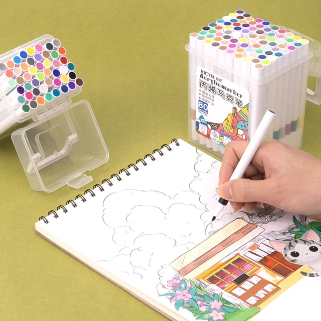 Set de 80 colores de marcadores de pintura acrílica, diseño de cubeta portátil, suministros de arte para dibujar, pintar, marcar, colorear, dibujar, adecuado para superficies de plástico, vidrio, cerámica, cartón, cuero, ideal regalo para artistas y estudiantes